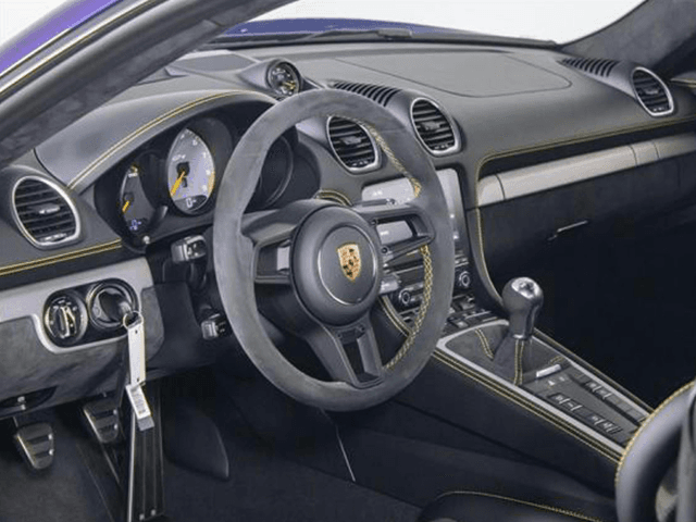Step inside the 718 Cayman to experience premium luxury. The impressive cabin is decorated with high-quality materials and customizable interior trims and finishes. With supportive sport seats, the interior ensures a relaxed yet engaging driving experience. The advanced infotainment system boasts a wide touchscreen display and compatibility with both Apple CarPlay and Android Auto. Luxury car enthusiasts can choose between high-end leather or Alcantara upholstery.